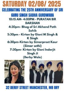 25th Gurdwara Anniversary Diwan on August 2nd (Saturday) @ 10:00 am – 9:00 pm