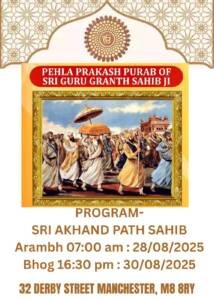 Pehla Prakash Purab Sri Guru Granth Sahib Ji – Akhand Paath – 28th Aug to 30th Aug