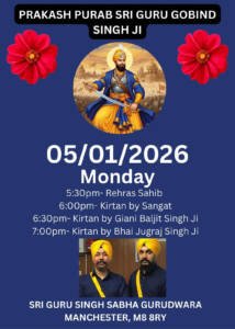 Sri Guru Gobind Singh Ji Prakash Gurpurab – 5th Jan(Monday)